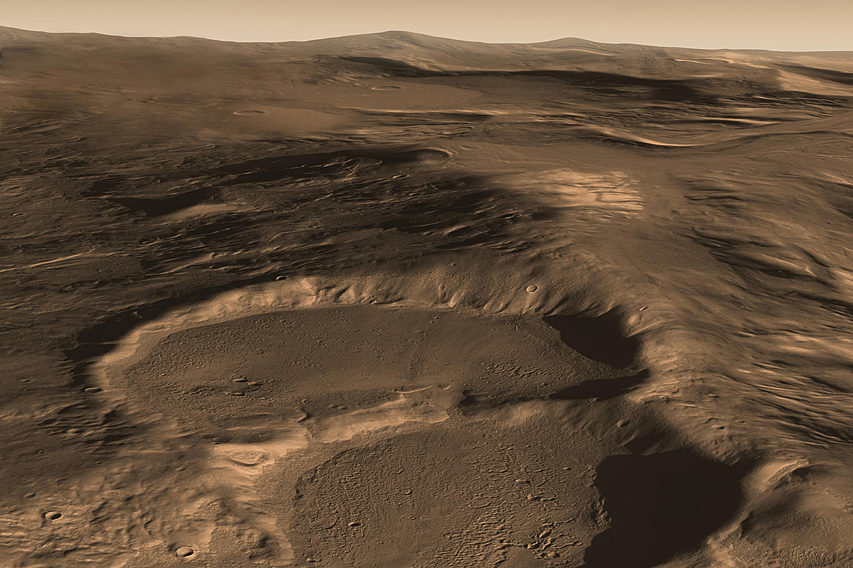 What created this unusual terrain on Mars? The floors of several mid-latitude craters in Hellas Basin on Mars appear unusually grooved, flat, and shallow. New radar images from the Mars Reconnaissance Orbiter bolster an exciting hypothesis: huge glaciers of buried ice. Evidence indicates that such glaciers cover an area larger than a city and extend as much as a kilometer deep. The ice would have been kept from evaporating into the thin Martian air by a covering of dirt. If true, this would indicate the largest volume of water ice outside of the Martian poles, much larger than the frozen puddles recently discovered by the Phoenix lander. Such lake-sized ice blocks located so close to the Martian equator might make a good drinking reservoir for future astronauts exploring Mars. How the glaciers originally formed remains a mystery. In the meantime, before packing up to explore Mars, please take a moment to suggest a name for NASA’s next Martian rover.